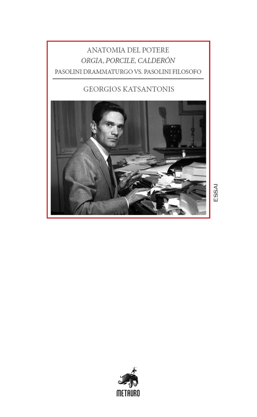 L'attraversamento del corpo nel teatro di Pasolini presenta una caratterizzazione in più rispetto agli altri linguaggi: la “parola” e il “corpo” sono di fatto una coppia sinonimica. Il nodo tematico, problematico e critico, non è tanto definire la centralità del corpo nel teatro di Pasolini, quanto capire come essa si esprima e quali segni emetta. Georgios Katsantonis elegge un canone breve ma esatto, comprendente tre testi che riguardano «il corpo in preda al desiderio sadomasochistico (Orgia), il corpo con la sua viscerale motivazione erotica che sconfina nella zooerastia (Porcile), il corpo imprigionato, tra scissione e visionarietà (Calderón)». Tali scavi monografici tengono comunque conto del complessivo macrotesto pasoliniano e inoltre si rifanno a vari riferimenti comparatistici: Sade, Spinoza, Goffman, Calderón de la Barca, Strindberg, nonché alle teorie tardonovecentesche sul «divenire animale». Lo scopo di questo saggio è di far risaltare la concezione filosofica e l'impegno politico che si nascondono dietro le drammaturgie pasoliniane, per vedere fino a che punto i connotati di quei poteri sono riconducibili al nostro mondo contemporaneo.