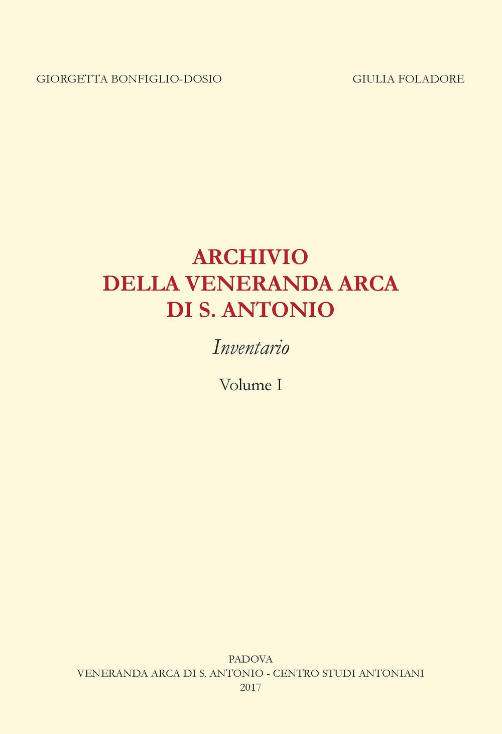 Il libro Archivio della «Veneranda arca di s. Antonio». Inventario di Giorgetta Bonfiglio-Dosio, Giulia Foladore