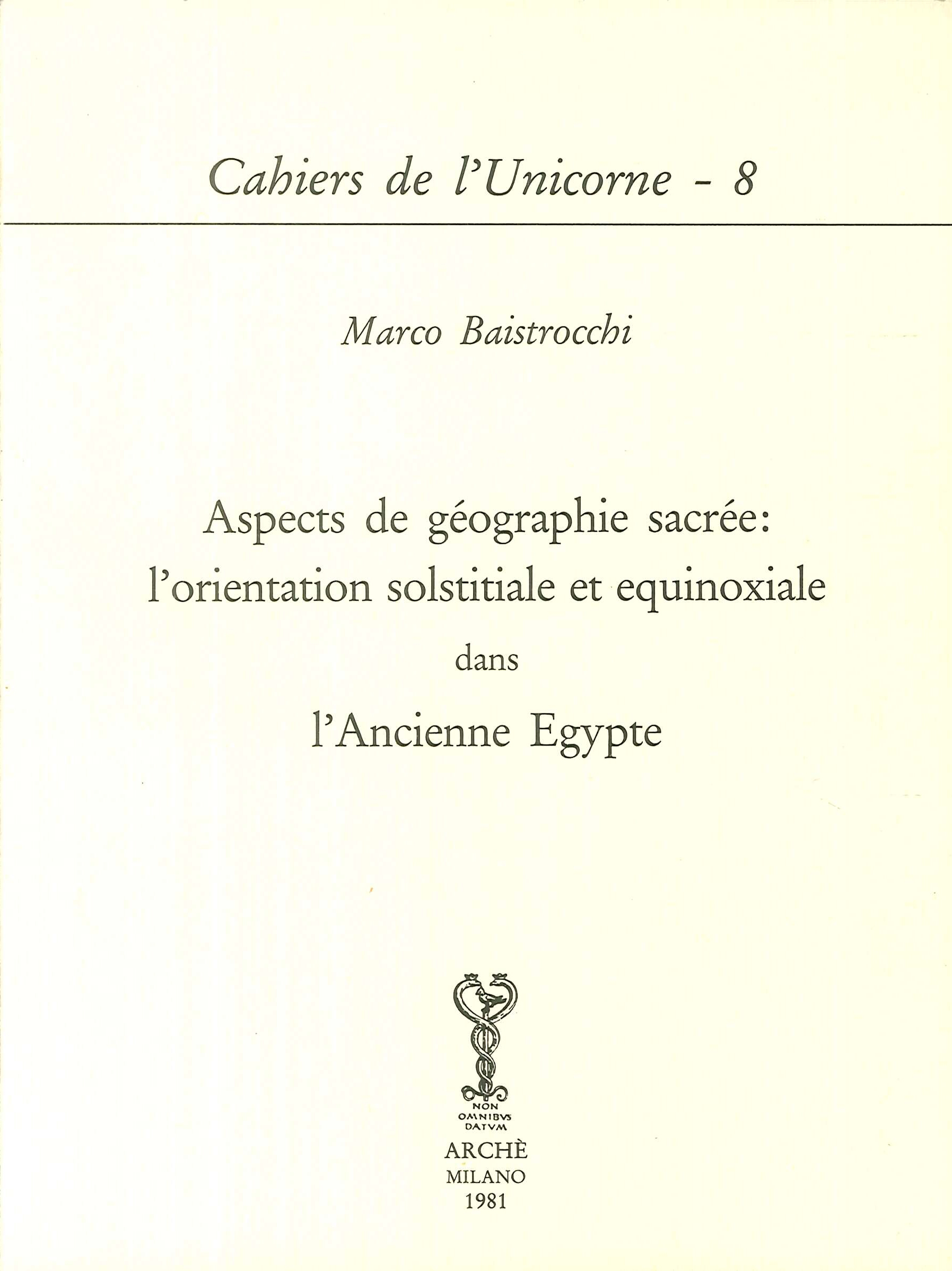 Il libro Aspects de géographie sacrée: l'orientation solsticiale et equinoxiale dans l'ancienne Egypte di Marco Baistrocchi