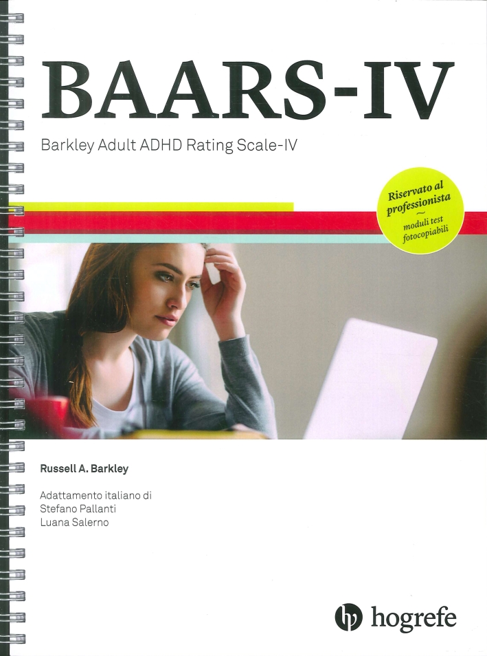 La BAARS-IV è uno strumento essenziale per valutare nell’adulto i sintomi ADHD attuali, rievocare i sintomi dell’infanzia e determinare quali siano i domini compromessi. Direttamente collegata ai criteri diagnostici del DSM, questa scala comprende sia una forma self-report che una other-report. La BAARS-IV non è soltanto una scala empiricamente fondata, ben validata anche nel contesto italiano e attendibile, ma è anche eccezionalmente conveniente da utilizzare:la forma lunga (30 item) richiede 10-15 minuti per essere completata, e la Quick-Screen (forma ridotta a 6 item, utilizzabile per identificare rapidamente la probabilità di un soggetto di avere l’ADHD) soltanto 5 minuti. Peculiarità della BAARS-IV è anche di essere in grado di misurare lo Sluggish Cognitive Tempo, forma di disattenzione che non si associa a quei problemi di iperattività e di impulsività nell’agire, parlare, esprimere le emozioni, o di distraibilità che si trovano solitamente nell’ADHD. La versione italiana è stata validata e standardizzata su un campione di 627 soggetti di età compresa fra i 18 e gli 89 anni. Il volume riporta in appendice i moduli del test liberamente fotocopiabili.| Autore | Russell A. Barkley |