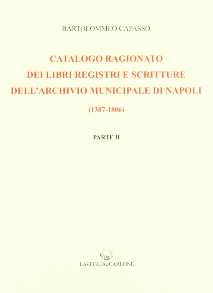Il libro Catalogo ragionato dei libri, registri e scritture dell'archivio municipale di Napoli (1387-1806) (rist. anast. 1899) di Bartolomeo Capasso