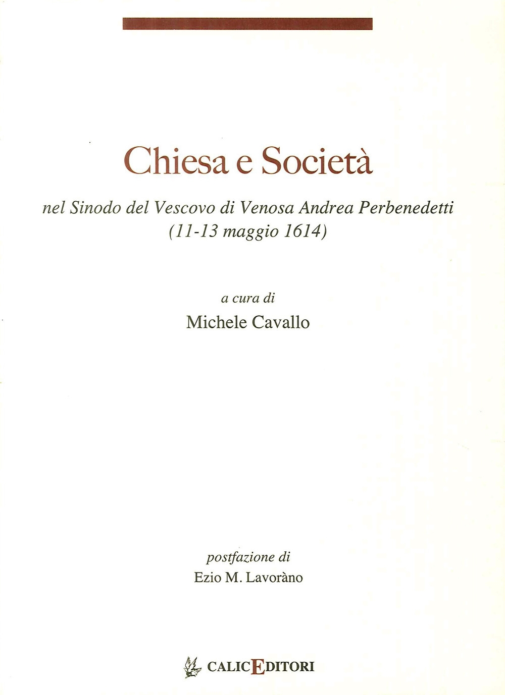 Il libro Chiesa e società nel Sinodo del Vescovo di Venosa Andrea Perbenedetti (11-13 maggio 1614)