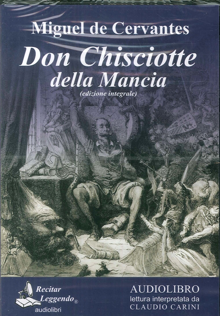 Alonso Quijiana, esaltato dalla lettura dei romanzi cavallereschi, si fa cavaliere errante e decide di percorrere in cerca di avventure, le strade della Spagna insieme col suo improvvisato scudiere, Sancio Panza. Miguel de Cervantes crea un personaggio unico, antieroe per eccellenza, che ha attraversato i secoli reclamando il proprio diritto a sognare. In continuo equilibrio tra realtà e fantasia, l'opera non è altro che un incredibile viaggio che si sviluppa come in un eterno gioco di specchi tra letteratura e vita. L'audiolibro propone l'edizione integrale dell'opera in 3 CDmp3 per una durata complessiva di 40 ore. Traduzione e lettura ad alta voce di Claudio Carini.| Autore | Miguel de Cervantes |