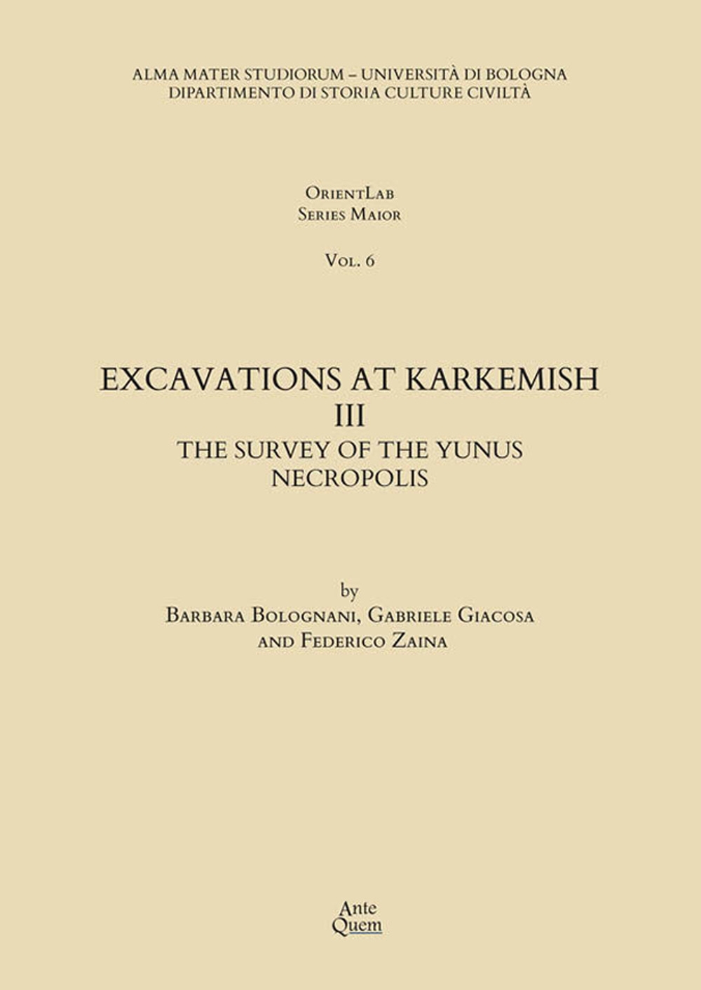 Il libro Excavations at Karkemish. Vol. 3: The survey of the Yunus necropolis di Barbara Bolognani, Federico Zaina, Gabriele Giacosa