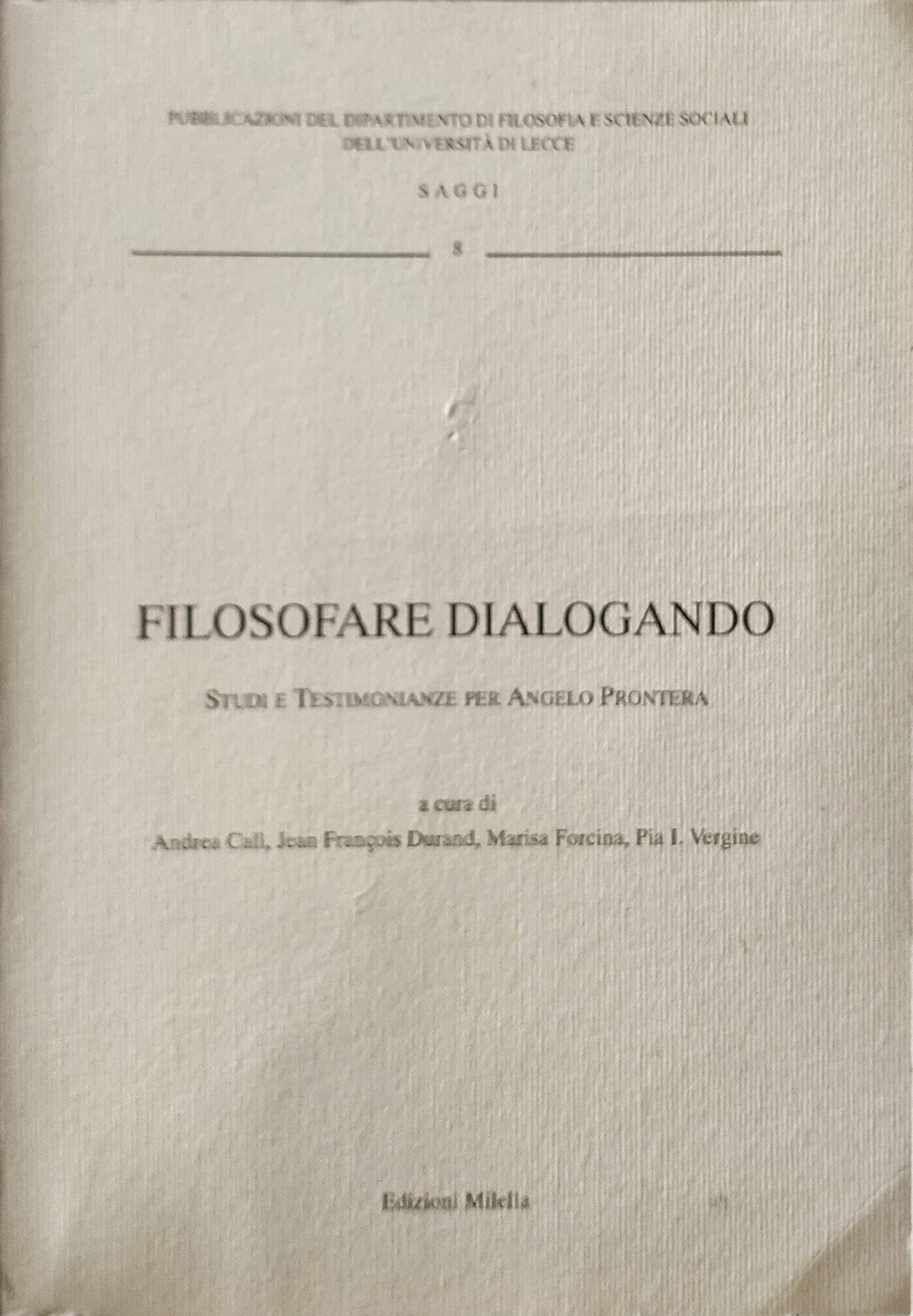 Il libro Filosofare dialogando. Studi e testimonianze per A. Prontera