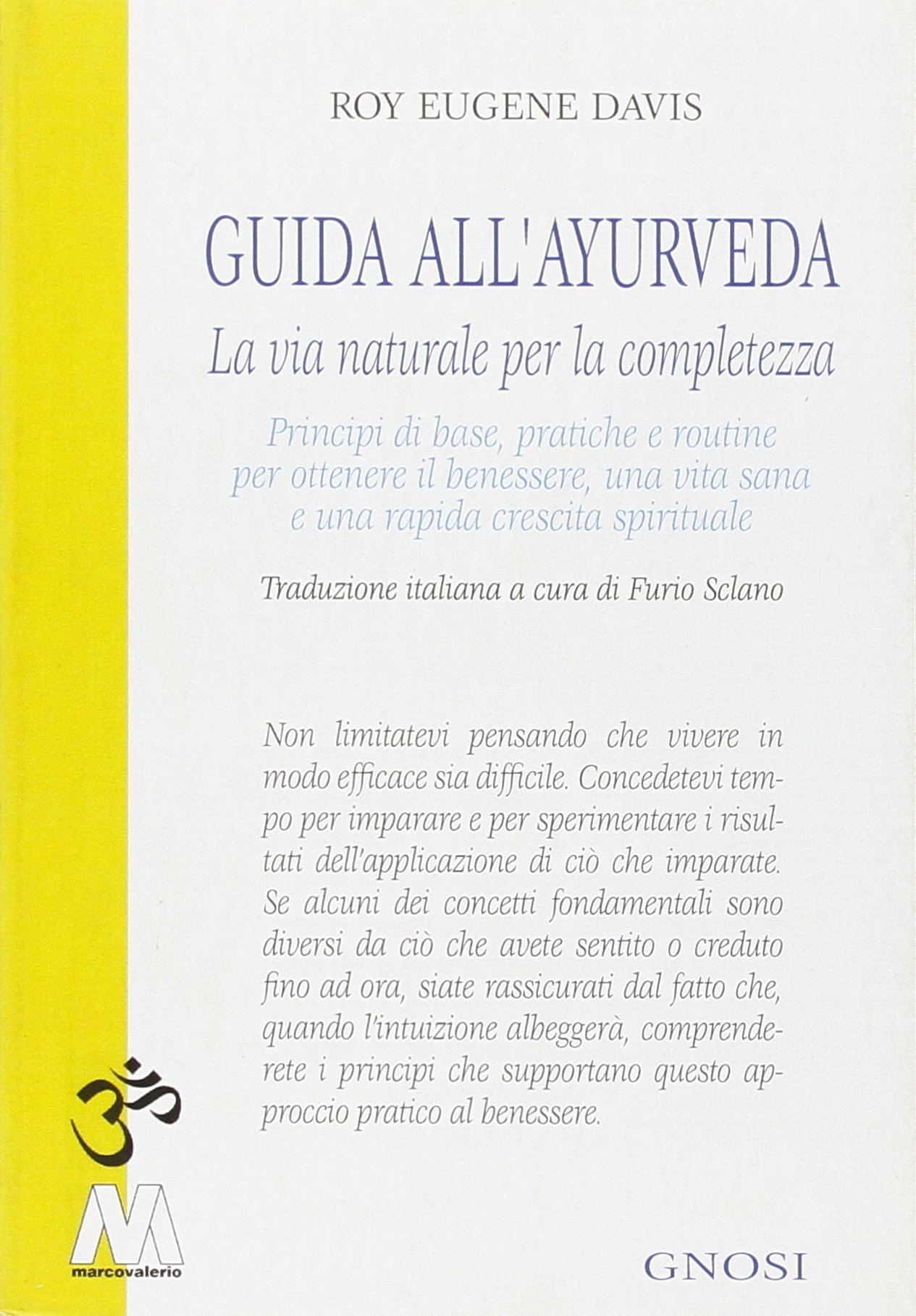 Non limitatevi pensando che vivere in modo efficace sia difficile. Concedetevi tempo per imparare e per sperimentare i risultati dell'applicazione di ciò che imparate. Se alcuni dei concetti fondamentali sono diversi da ciò che avete sentito o creduto fino ad ora, siate rassicurati dal fatto che, quando l'intuizione albeggerà, comprenderete i principi che supportano questo approccio pratico al benessere. La conoscenza dell'Ayurveda è utilissima sia a chi è attivamente impegnato sul sentiero spirituale, sia a chi non lo è. Utilizzate al meglio le informazioni contenute in questo libro per il vostro benessere e guardatevi dall'improvvisarvi terapeuti nei confronti di altre persone. La pratica di questa scienza millenaria è frutto di studio accorato e realizzazione spirituale. Non è una pratica da palestra, da estetista o da centro multifunzionale. Se intendete avvalervi di un aiuto professionale riguardante l'Ayurveda, accertatevi sempre della qualifica di chi lo offre.| Autore | Roy Eugene Davis |