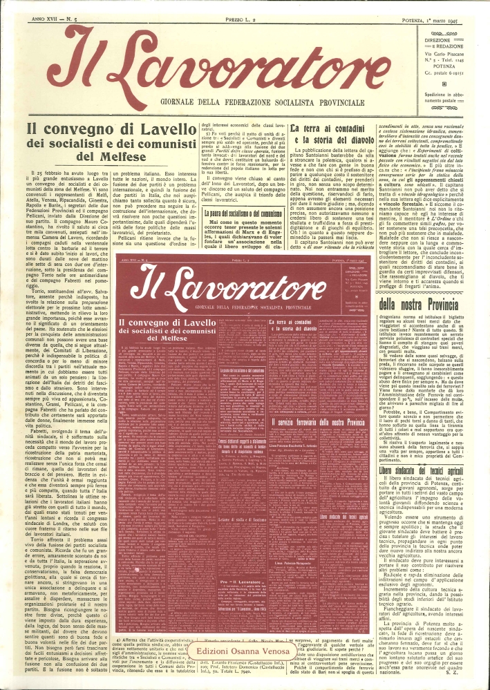 Il libro Il Lavoratore. Settimanale socialista di Basilicata (1913-17, 1944-46) rist. anast.