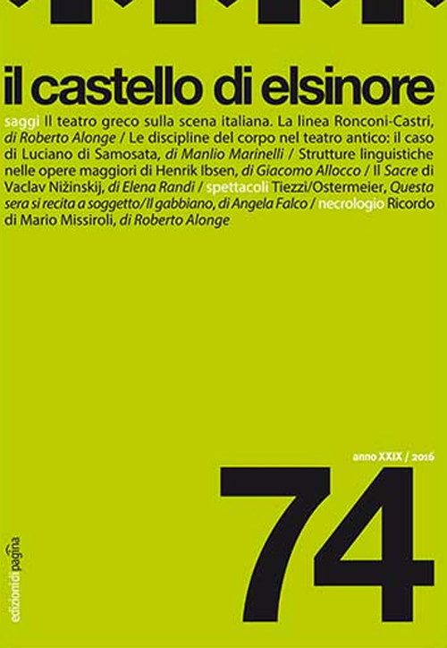 "Il castello di Elsinore" è una rivista semestrale di teatro profondamente radicata nell'Università italiana. Nata nel 1988, essa raccoglie nel suo comitato direttivo quasi la metà degli ordinari di Storia del teatro in Italia e illustri studiosi di università straniere. La rivista è articolata in tre sezioni: la prima, intitolata Saggi, comprende rigorosi studi critici su personaggi e opere della storia del teatro e dello spettacolo; la seconda, Materiali, raccoglie e cura documenti, lettere e riflessioni di poetica; la terza, Spettacoli (e/o Libri), recensisce e analizza gli avvenimenti più significativi della stagione teatrale italiana e straniera. I temi di cui la rivista si occupa sono svariati e attraversano l'intera storia del teatro europeo, dal teatro greco alla Commedia dell'Arte, dal teatro rinascimentale italiano al teatro nordico di Ibsen e Strindberg, dal simbolismo europeo a Pirandello.| Editore | Edizioni di Pagina |