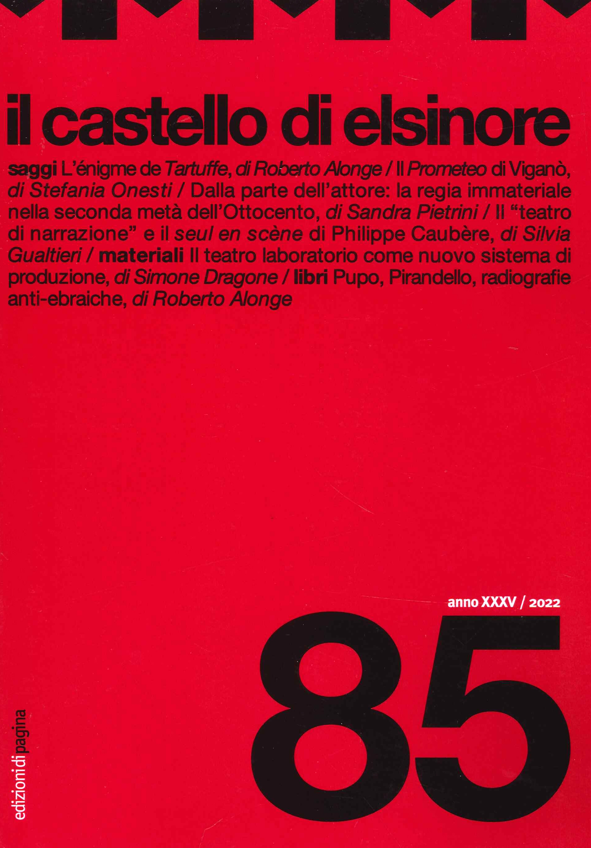 "Il castello di Elsinore" è una rivista semestrale di teatro profondamente radicata nell'Università italiana. Nata nel 1988, la rivista raccoglie nel suo comitato scientifico quasi la metà degli ordinari di Storia del teatro in Italia e illustri studiosi di università straniere. La rivista è articolata in tre sezioni (talvolta quattro): la prima, intitolata Saggi, comprende rigorosi studi critici su personaggi e opere della storia del teatro e dello spettacolo; la seconda, Materiali, raccoglie e cura documenti, lettere e riflessioni di poetica; la terza, Spettacoli (e/o Libri), recensisce e analizza gli avvenimenti più significativi della stagione teatrale italiana e straniera. I temi di cui la rivista si occupa sono svariati e attraversano l'intera storia del teatro europeo, dal teatro greco alla Commedia dell'Arte, dal teatro rinascimentale italiano al teatro nordico di Ibsen e Strindberg, dal simbolismo europeo a Pirandello.| Editore | Edizioni di Pagina |