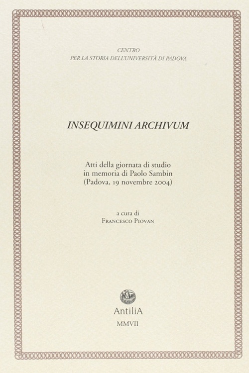 Il libro Insequimini archivum. Atti della Giornata di studio in memoria di Paolo Sambin (Padova, 19 novembre 2004)