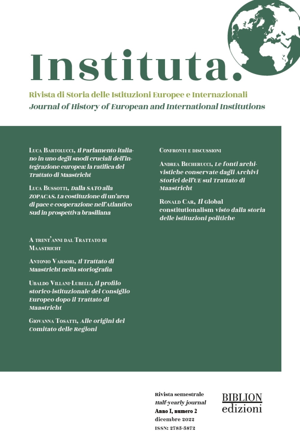Il libro Instituta. Rivista di Storia delle istituzioni europee e internazionali (2022). Vol. 2