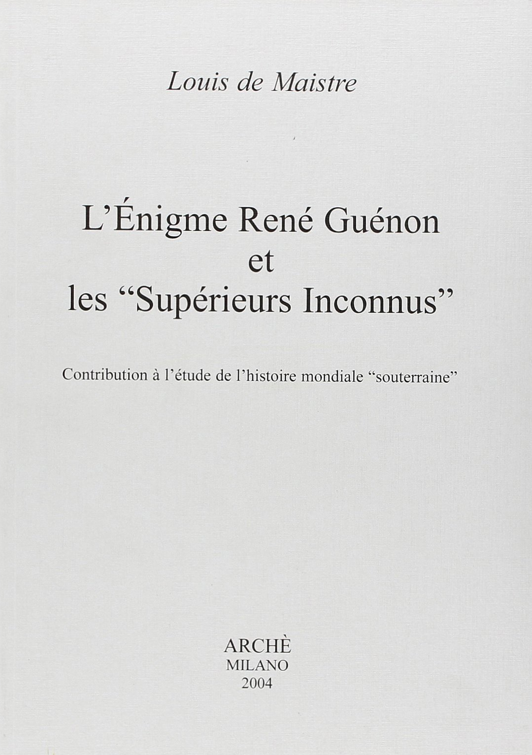 Il libro L'enigme Rene Guenon et les superieurs inconnus di Louis de Maistre
