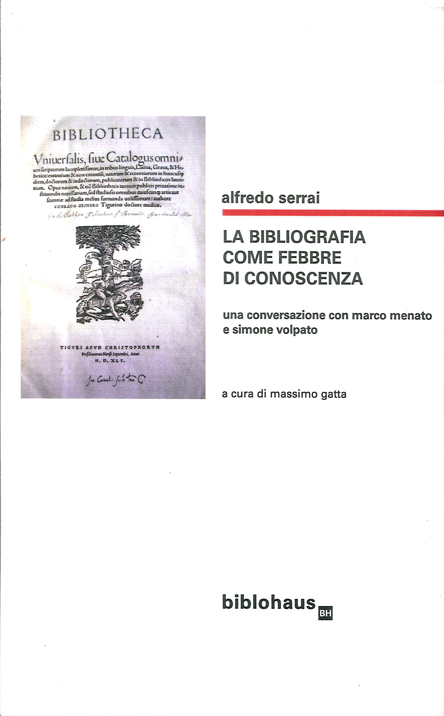 Il libro La bibliografia come febbre di conoscenza. Una conversazione con Marco Menato e Simone Volpato di Alfredo Serrai