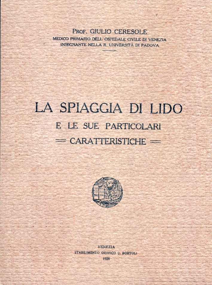 "La spiaggia di lido e le sue particolari caratteristiche" è un libro pubblicato nel 1922 e il cui testo è stato ristampato in facsimile nel 2012 in omaggio alla spiaggia del Lido celebrata dal suo autore, il prof. Giulio Ceresole, medico primario dell'Ospedale Civile di Venezia e docente all'Università di Padova nei primi decenni del Novecento.| Autore | Giulio Ceresole |