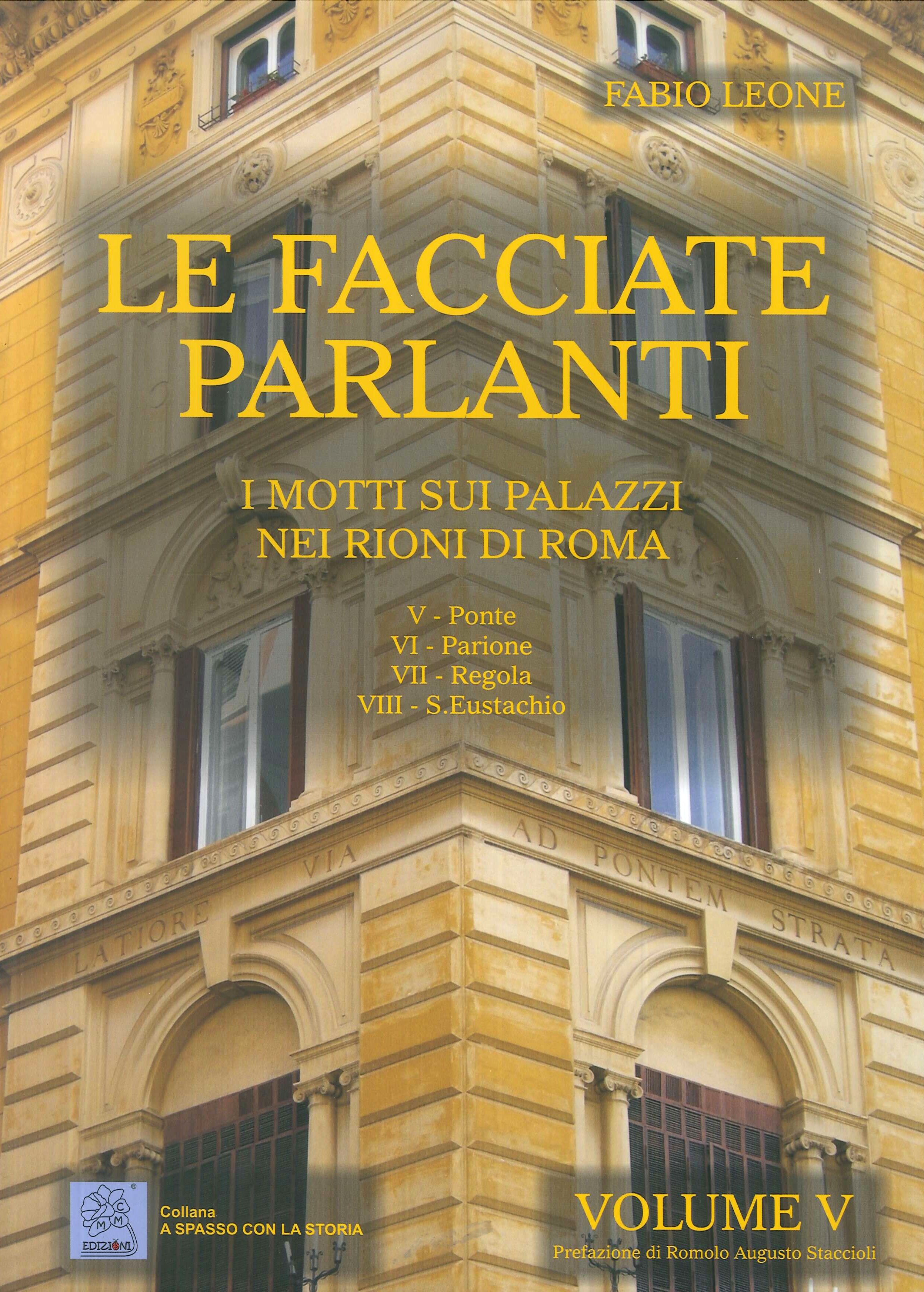 "Le facciate parlanti" vuole essere il traguardo di una lunga ricerca, svolta in giro per Roma, di iscrizioni e motti che caratterizzano numerosi edifici pubblici e privati. Il cospicuo materiale raccolto, composto da informazioni storiche e fotografie a colori originali ordinate in singole schede per ciascun edificio, è stato suddiviso in più parti. Questo quinto volume porta avanti l'osservazione degli edifici ubicati nel Centro Storico della capitale nei quattro rioni che rappresentano il cuore della Roma rinascimentale: Ponte, Parione, Regola e S. Eustachio. Per ciascun rione è presente una planimetria indicativa con l'ubicazione dei luoghi citati, un elenco degli stessi, una breve storia del singolo rione e le schede relative agli edifici con le facciate parlanti.| Autore | Fabio Leone |