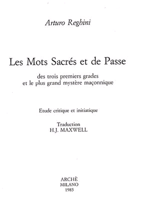 Il libro Les Mots sacrés et de passe des trois premiers grades et le plus grand mystère maçonnique. Etude critique et initiatique di Arturo Reghini