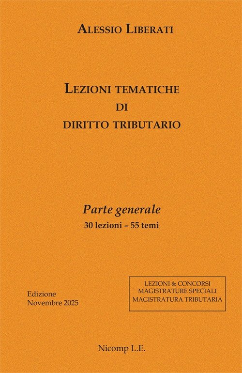 Il volume di lezioni di diritto tributario (parte generale) affronta in modo sistematico e approfondito i temi fondamentali della materia, offrendo una lettura aggiornata alle più recenti evoluzioni della giurisprudenza nazionale e arricchita dal costante riferimento alla giurisprudenza sovranazionale della CEDU e della Corte di Giustizia dell'Unione Europea. L'opera si propone come uno strumento di studio capace di coniugare l'analisi teorica con l'applicazione pratica dei principi, fornendo così una visione organica dei temi specificamente trattati. Le lezioni si sviluppano seguendo un percorso logico e consequenziale, nel quale ogni argomento si collega al successivo in un continuum tematico che facilita la comprensione e l'approfondimento. L'impostazione didattica è pensata specialmente, ma non esclusivamente, per rispondere alle esigenze di chi prepara corsi di specializzazione e concorsi pubblici di livello post-universitario. Per agevolare la ricerca e lo studio, ogni argomento trattato include anche gli estratti dei testi normativi di riferimento e le massime della giurisprudenza più significativa, selezionata e riportata in modo da fornire un quadro chiaro delle principali interpretazioni dottrinali e giurisprudenziali.| Autore | Alessio Libertati |