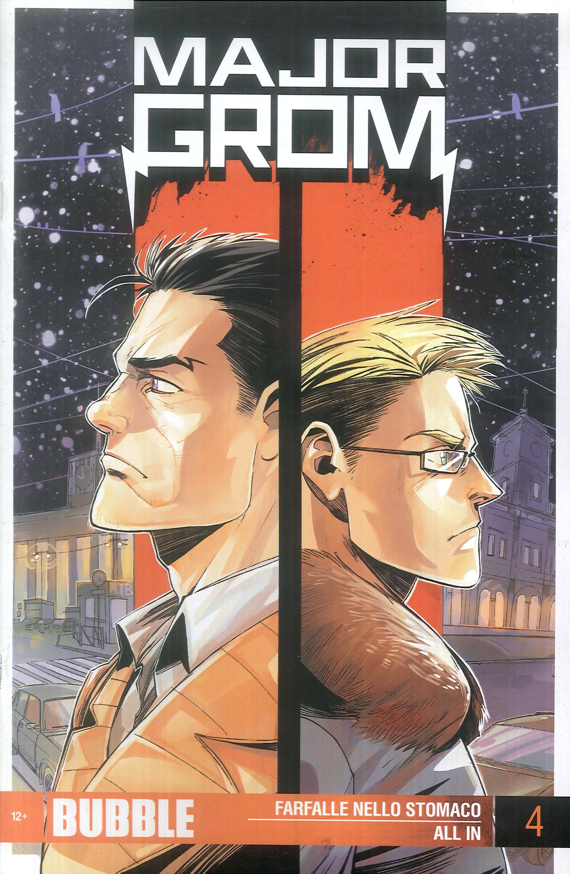 È il momento di fare un salto nel passato, come nelle altre collane Bubble Comics. Anche stavolta torniamo al 31 dicembre del 2011 e cogliamo in due storie separate una incredibile coincidenza, purtroppo non piacevole, per l'allora cadetto di polizia a Mosca, Dima Dubin e l'allora capitano Igor Grom a San Pietroburgo: "Farfalle nello stomaco" e "All In". La prima storia segna anche il debutto in Italia di Anastasia Kim, la disegnatrice che prossimamente si occuperà sia di "Major Grom" che di "Demonslayer" e che è nota in rete anche col nome d'arte Phobs, nonché autrice della graphic novel "Sette Figli-Jaikarn", sempre edita dalla Italycomics.| Autore | Artem Gabrelyanov |
