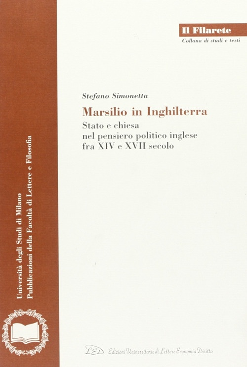 Il libro Marsilio in Inghilterra. Stato e Chiesa nel pensiero politico inglese fra XIV e XVII secolo di Stefano Simonetta