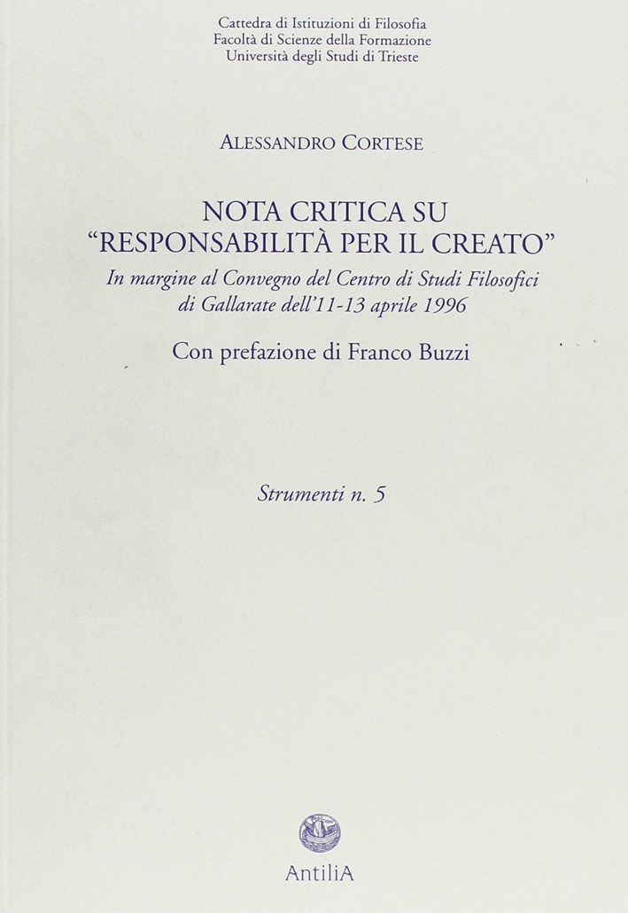 Il libro Nota critica su «Responsabilità per il creato» di Alessandro Cortese