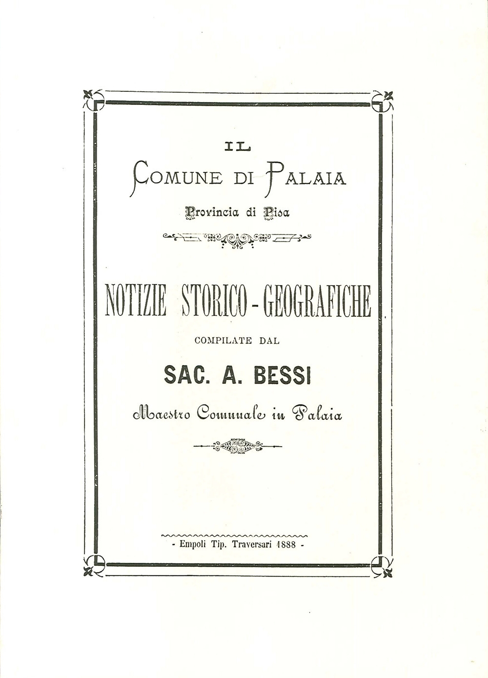 Il libro Notizie storico-geografiche compilate dal Sac. A. Bessi maestro comunale in Palaia di A. Bessi
