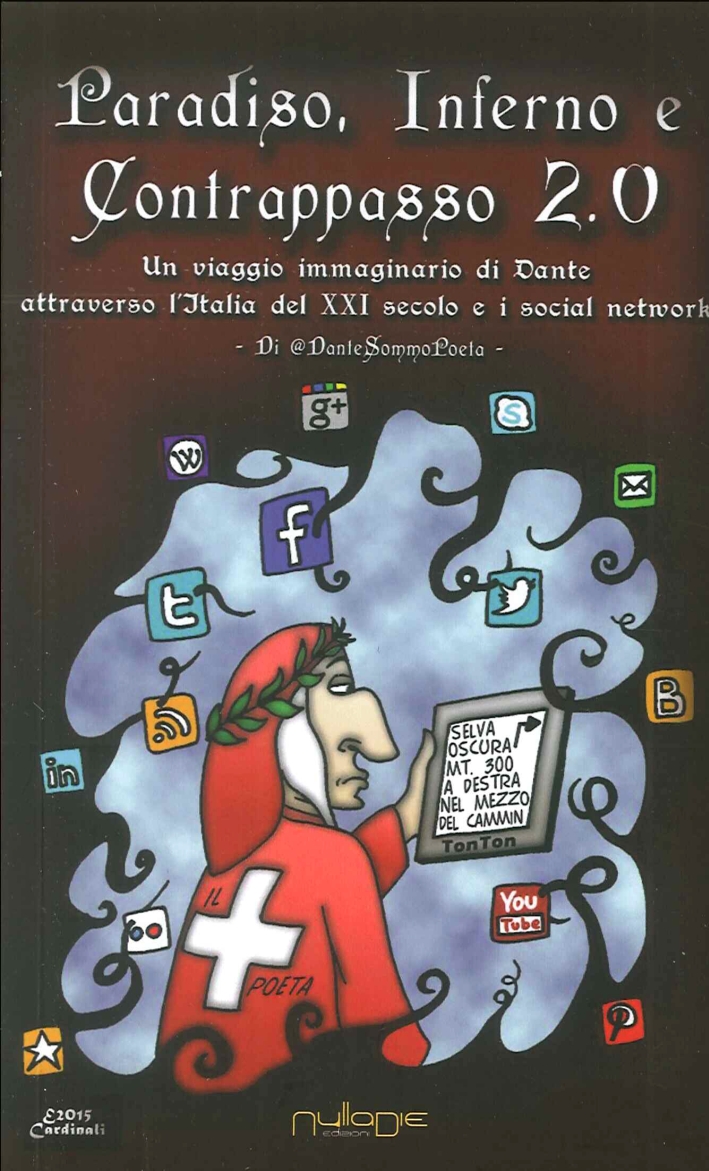 Attraversando l'Italia e i social network, DanteSommoPoeta immagina Paradiso e Inferno oggi. E ironizza sul XXI secolo da più punti di vista: politica, società, calcio, vizi e virtù degli italiani. Gironi e cerchi dell'Inferno sono adattati ai peccati moderni e per il contrappasso 2.0 si può scegliere fra 5 pene alternative. Fra i nuovi peccatori gli insozzatori di bagni pubblici, i fanatici del piercing e chi lascia il SUV in doppia fila. Il Paradiso 2.0 è una community di Facebook: quanti più like si ricevono, tanti più punti di accumulano per accedere all'Empireo: i cieli sono alberghi e resort, dai più modesti al lusso sfrenato. La parodia delle poesie più famose di Dante ma anche di Leopardi e Manzoni completa l'opera insieme con "De Vulgari Dementia" e "Vita Nota". Sorridendo si rende omaggio in maniera "leggera" a un genio più che mai attuale a dispetto dei suoi 750 anni. DanteSommoPoeta è un personaggio nato a ottobre 2011 su Twitter dove conta migliaia di followers. Si esprime in terzine di endecasillabi. Senza mai rinunciare all'ironia, di sé ama dire: Nel mezzo del cammin di nostra vita mi ritrovai con un'utenza oscura: la password de la posta aveo smarrita.| Autore | DanteSommoPoeta |
