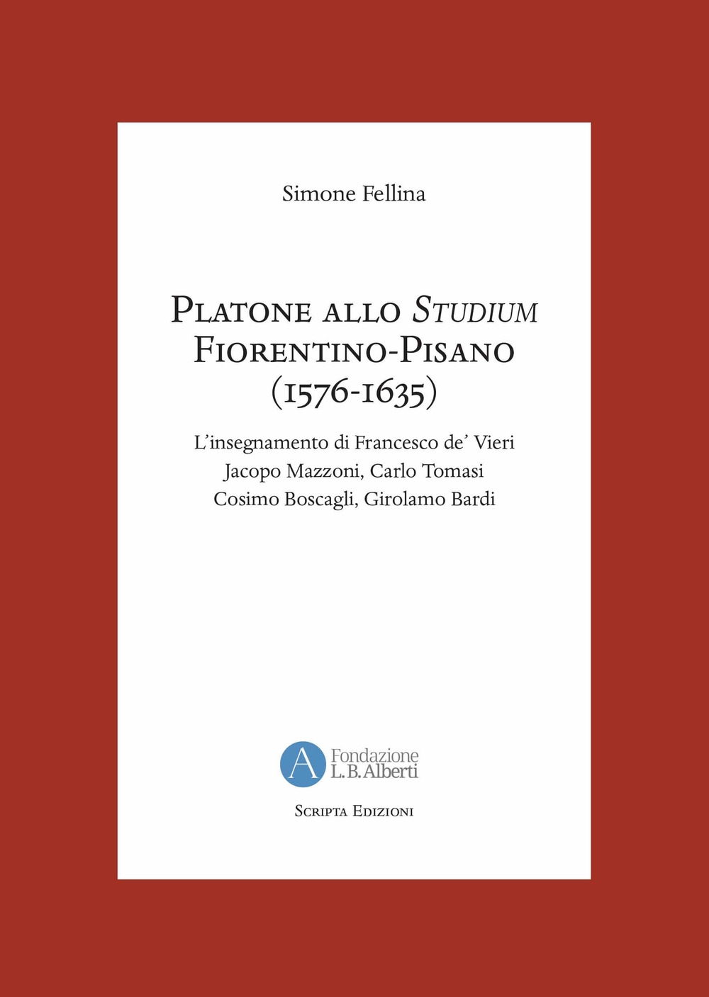 Il libro Platone allo Studium Fiorentino-Pisano (1576-1635). L'insegnamento di Francesco de' Vieri, Jacopo Mazzoni, Carlo Tomasi, Cosimo Boscagli, Girolamo Bardi di Simone Fellina