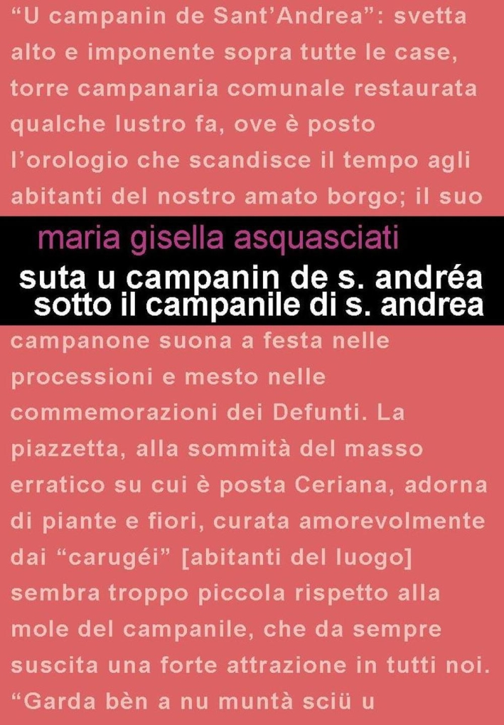 Cosa avviene sotto il campanile del piccolo borgo di Ceriana? Come in ogni paese si vive la Vita, si lavora nelle campagne e nel paese, si studia, si scrive, si ama, si odia, ma anche, qui si canta, eredità degli antichi liguri e dei celti. E seduti sulle antiche pietre dei carugi e delle piazze e nelle case si parla di vecchie o attuali vicende, si raccontano favole, si ricorda l'antica saggezza della nostra gente; nelle cucine e nelle sagre si preparano i piatti della tradizione il cui profumo pervade tutto e tutti e sale fino al nostro campanile che vede, sente, ama, veglia su tutti noi.| Autore | M. Gisella Asquasciati |