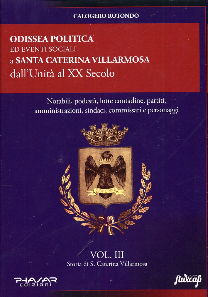 Con questo terzo volume - ultimo della trilogia sulla storia della baronia di Risichillia, dei Grimaldi, dei Cottone e di S.Caterina - Calogero Rotondo conclude la ricostruzione di cinque secoli di storia di S.Caterina Villarmosa dal XVI al XX secolo. La pubblicazione, presentata dal pubblicista dott. Filippo Falcone, tra storia d'Italia e della Sicilia, dall'Unità al XX secolo, ripercorre, nel contesto politico e socio-economico dell'epoca, l'odissea politica e gli eventi sociali di S.Caterina dal 1861 alla Grande guerra, dal Fascismo al Secondo conflitto mondiale e dalla Prima alla Seconda Repubblica. Notabili, fascismo, podestà, lotte contadine per il possesso della terra, riforma agraria, assegnazione di feudi, cambiamenti sociali e urbanistici, emigrazione, proteste delle ricamatrici, alleanze politiche tra i partiti, movimenti civici, progetti elettorali verso il 2000, amministrazioni comunali, sindaci, commissari, partiti, associazioni e figure rappresentative.| Autore | Calogero Rotondo |