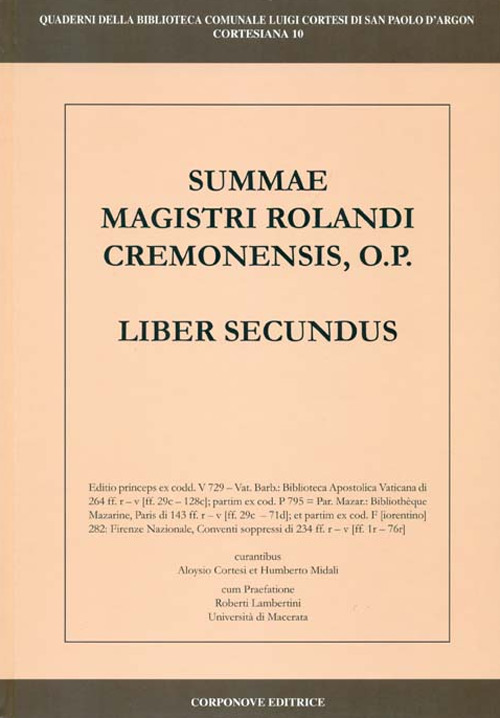 Il libro Summae Magistri Rolandi Cremonensis, O.p. Liber secundus. Ediz. italiana e latina