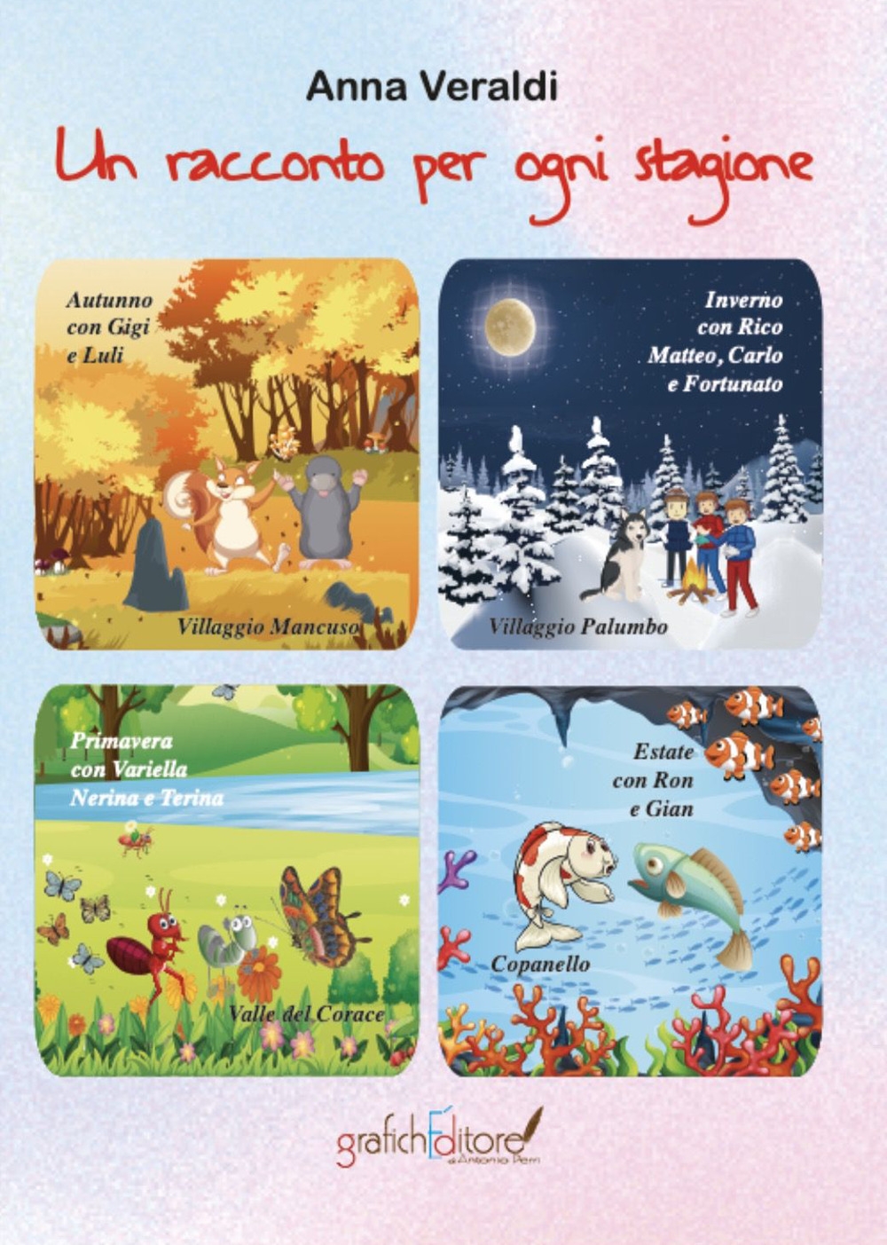 Nei quattro racconti le avventurose vicende dei personaggi s’intrecciano con le bellezze di alcuni luoghi della Calabria, ai quali sono particolarmente legata. Le trasformazioni dei colori dei paesaggi nel corso di ogni stagione risaltano lo splendore della natura. Emergono alcuni valori fondamentali come l’amicizia tra gli esseri viventi, l’unione della famiglia, il coraggio d’affrontare situazioni di pericolo e la necessità di mantenere inalterato l’ambiente, con il contributo costante delle nostre piccole azioni quotidiane. Età di lettura: da 6 anni.| Autore | Anna Veraldi |