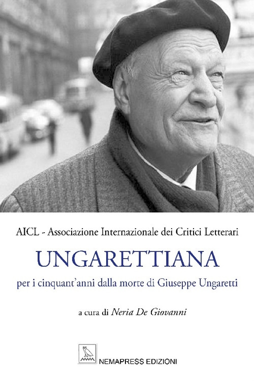 L'Associazione Internazionale dei Critici Letterari, in occasione dei cinquant'anni dalla morte del poeta italiano Giuseppe Ungaretti, ha pubblicato una raccolta di saggi scritti da diciannove associati provenienti da diverse città italiane (Taranto, Roma, Pozzallo, Genova, Nuoro, Padova e Bari) e da diverse nazioni Romania, Spagna, Venezuela, Francia, Argentina ed Albania. Il libro, prefato e curato da Neria De Giovanni (presidente dell'A.I.C.L.), è arricchito da una scelta di poesie ungarettiane tradotte in lingua spagnola e da un link al video girato in occasione di questo anniversario con testimonianze di dieci relatori presenti nel libro.| Editore | Nemapress |